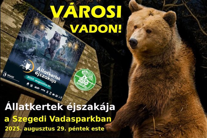 A Magyar Állatkertek és Akváriumok Szövetségének (MÁASZ) tagjai közül 10 állatkertben – köztük a Szegedi Vadasparkban – idén is különleges esti programokkal várják a látogatókat augusztus utolsó péntekén.