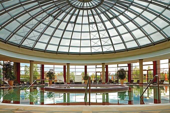 A legfőbb attrakciót természetesen az öt emelet magas, 72 méter átmérőjű óriáskupola alatti fedett vízi birodalom kínálja, ahol 15 medence és 11 – összesítve csaknem egy kilométer hosszú – változatos kialakítású csúszda gondoskodik arról, hogy a csúszás élménye sose legyen egyforma. Van itt még élménymedence, hullámfürdő és klasszikus úszómedence is, ahol az úszás- és a búvároktatás is egyedülálló lehetőség. Ha pedig megéheznénk, az élményfürdő önkiszolgáló étterme gondoskodik arról, hogy megtaláljuk az étkezési szokásainak megfelelő ízletes falatokat.
