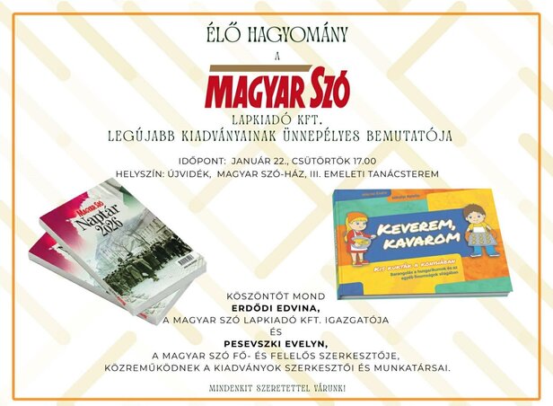 Ünnepélyes keretek között mutatjuk be január 22-én, csütörtökön 17 órai kezdettel Újvidéken, a Magyar Szó-ház III. emeleti tanácstermében a Magyar Szó Lapkiadó Kft. legújabb kiadványait, a Naptár 2026 és a Keverem, kavarom című köteteket.