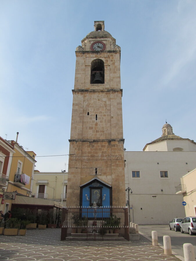 Manfredonia egy fiatalabb olasz város. 1260 körül alapította Manfréd szicíliai király. A nehéz terepviszonyok miatt itt volt a legkönnyebb megközelíteni a stratégiai fontosságú félszigetet. Manfredónia egy korábbi fontos város mellett épült. Siponton keresztül lehetett évszázadokon át eljutni a félszigetre. Egy 1255-ös földrengés viszont romba döntötte, nagy területek elmocsarasodtak, így magas lett a fertőzés az elhullott állatok és emberek tetemei miatt. Ekkor kezdte építeni Manfréd király az új települést, amely virágzó kereskedő- és kikötőváros lett a törökök betöréséig. A XVII. század óta semmit sem változott a Citta vecchia (óváros), tőle északra viszont kiépült a Citta nouva, az új Manfredónia.
