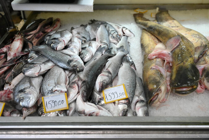 Ahány család, annyiféle karácsonyi menü. A legtöbb helyen ezekben a napokban többek között hal is kerül az asztalra valamilyen formában. A Tejpiacon tegnap az élő pontyot kilogrammonként 650 dináros áron vásárolhattuk meg, míg az egész pisztráng kilogrammját 850 dinárért, a filét pedig 1200 dinárért kínálták. A szárnyasok közül karácsonykor elsősorban a pulykára mutatkozik igény. A konyhakész egész pulyka ára kilogrammonként 1000 dinár, és egy kilogramm alsó combért is ennyit kell fizetni, ám az állat húsosabb részeiért 1400 dinárt is fizetni kell kilogrammonként. Tegnap azt láthattuk, hogy fiatalok és idősek részéről is egyaránt érdeklődés mutatkozott a pulykahús iránt, ám főleg kisebb mennyiséget vásároltak. Az egész kacsa kilogrammjáért 800, míg a libáért 900 dinárt kell fizetni.