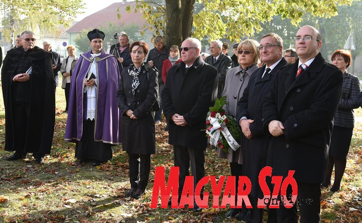 A nagyjából 5 méter magas, egy helybeli kőfaragó által készített alkotás a katolikus templom előtti parkban van, ugyanott, ahol már 1941-ben is állt egy hasonló emlékmű. Azt a második világháború után felrobbantották, a falubeliek és még sokak közbenjárásának köszönhetően most, 70 évvel később, végre sikerült felújítani. A turulmadár alatti kőtömbbe 69 helybeli nevét vésték, ők harctereken estek el. A falunak akkoriban sem volt ezer-ezerötszáznál több lakója, úgyhogy ezt a vesztességet hatalmas csapásként élték meg. Az emlékezés virágait elhelyezték az anyaország kormányának, testvértelepüléseinek, a Magyar Nemzeti Tanácsnak, a Vajdasági Magyar Szövetségnek, továbbá a helyi önkormányzatnak a képviselői is, az alkalmi ünnepség után az egybegyűltek átvonultak az alig 50 méterre lévő, a falu második világháborús áldozataira emlékeztető szoborműhöz, ahol ugyancsak elhelyezték a kegyelet virágait. Minderről hétfői számunkban bővebben is cikkezünk majd.