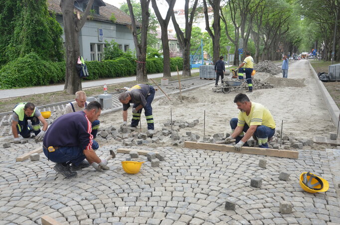 A Munkás utcában a múlt szombaton kezdték meg a macskaköves útfelület visszaállítását, a munkálatok 120 napig tartanak. Még tavaly befejeződtek a csatorna-felújítási munkálatok, ezután csak egy vékony réteg útburkolatot helyeztek le, mivel már nem maradt idő az eredeti, macskaköves útfelület visszaállítására. Egy hete, újra felszedték a betonréteget, lezárták az utcát, és megkezdődött a kőkockák elhelyezése az úttesten. A munkálatokat a Put invest vállalat végzi, a macsakakövek visszahelyezése mellett, felújítják a parkolókat és a zöld területeket is. A Városépítési Intézetben elmondták, összetett munkáról van szó, minden kőkockát kézzel helyeznek és illesztenek az útra. Megpróbálják minél rövidebb idő alatt befejezni az utca lekövezését, de a munka menetét nagymértékben befolyásolja az időjárás.