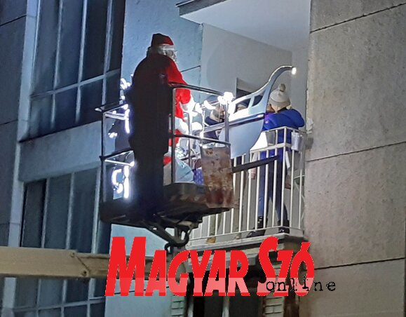 Ne ijedj meg, fiacskám, a bácsi az ablakban nem lopni jött, hanem ajándékot hozott… Igen, még nem is olyan régen, alig pár évtizeddel ezelőtt, akkor, amikor még a lakásainkban voltak valódi értékek, és amikor még egy-egy videórekorderért vagy egy tévékészülékért a tolvajok hajlandóak voltak betörni mások lakásába, akkor még az ablakainkba létrán érkező, álarcos alakok általában vittek, és nem hoztak. Manapság már csak nagyon kevesen másznak be idegen lakások ablakain, nem éri meg, hacsak nem előre megbeszélt és kifizetett „akcióról” van szó. Nem tudjuk, hogy a Télapónak mekkora az órabére, az azonban bizonyos, hogy a munkagépnek számító daruszerkezet bérlése nem olcsó mulatság. Az emelőplatformon csücsülő Télapót Ótos András kollégánk kapta lencsevégre székházunk közelében.